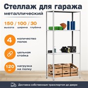 Стеллаж для балкона 1500*700*300 с 4 полками и с цельной стойкой идеальная система хранения для балкона, дома, гаража, дачи или офиса. Данный стеллаж отлично подойдет для размещения цветов или рассады на балконе.Стойка стеллажа цельная (не разборная) за счет чего конструкция более прочная, устоийчивая и имеет большую грузоподъемность. Равномерно распределенная нагрузка на полку составляет 120кг., на весь стеллаж - 750кг. Грузоподъемность указана при установке нижний полки не выше 20 см от пола. Полки крепятся к стойкам с помощью болтов (крепеж в комплекте). Шаг креления полки 25 мм, что позволяет установить нужное количество полок на любой высоте. Полки имеют усиление в центре, что предотвращает прогиб при излишней нагрузке. Стойки и полки покрыты светло-серой (RAL 7035) порошковой краской, которая защищает металл от коррозии.