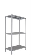 Металлический стеллаж с вешалом для одежды 1500х1000х500 3 полки 1 вешало. Нагрузка на полку 120 кг. Стеллаж выдерживает нагрузку 750 кг. В комплект входит: 4 стойки, 3 полки, 1 штанга, 2 держателя для штанги с фланцами, уголки жесткости, комплект крепежа, подпятники. Элементы крепятся с помощью болтов. Покрытие: полимерная краска светло-серого цвета (RAL7035.)