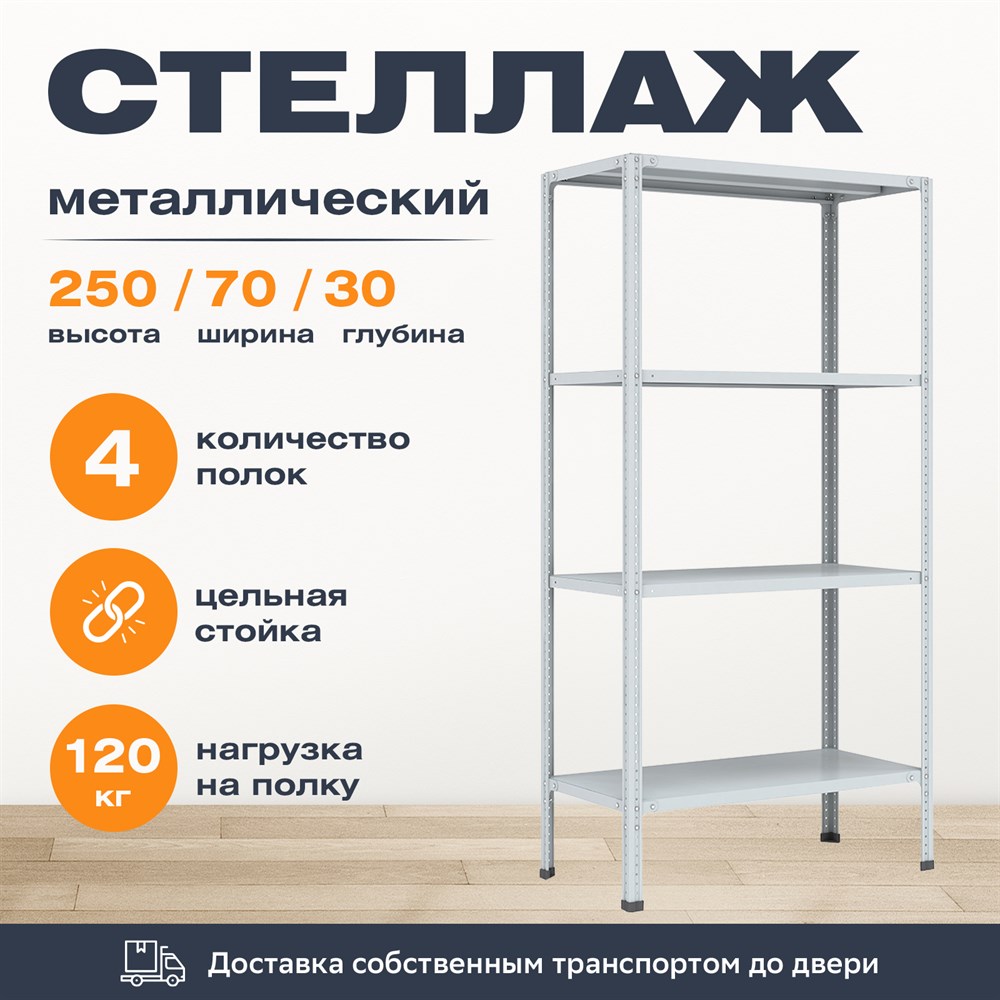 Стеллаж 2500*700*300 (4 полки) Лайт MR с цельной стойкой металлический сборный