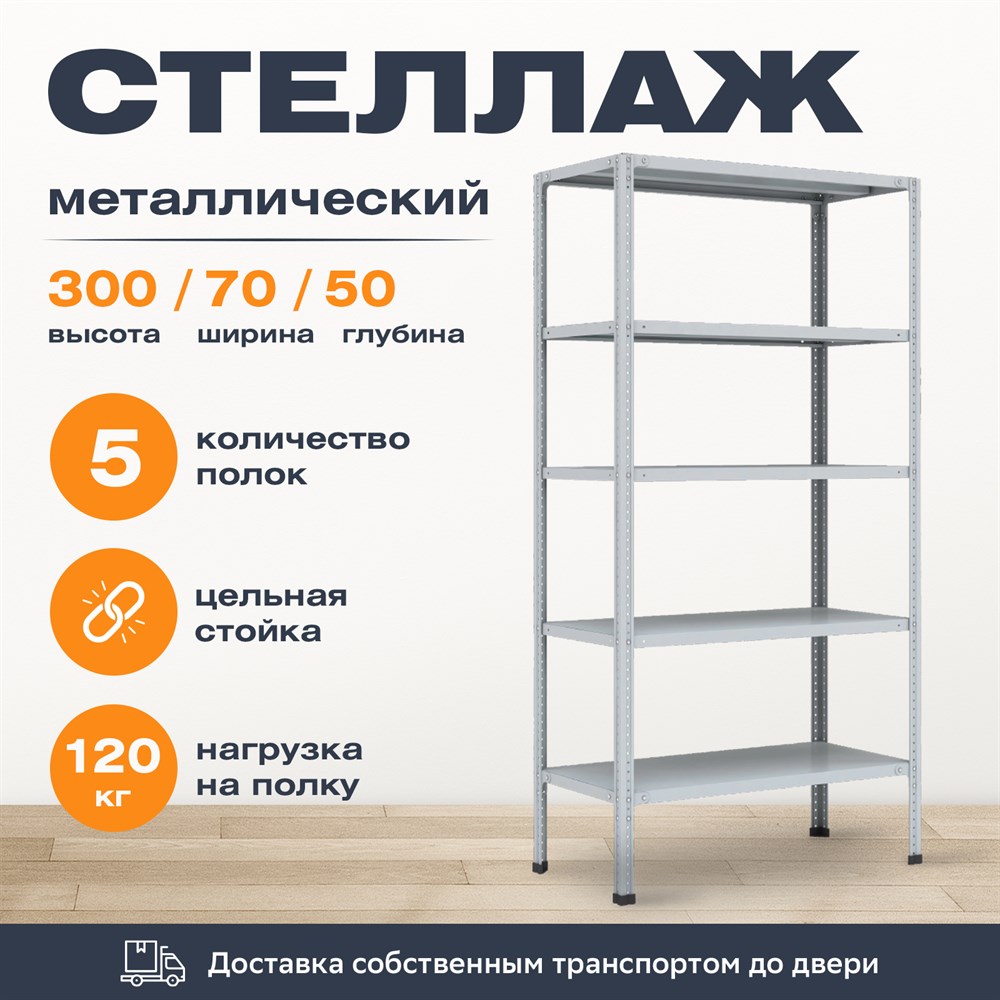 Стеллаж 3000*700*500 (5 полок) Лайт MR с цельной стойкой металлический сборный