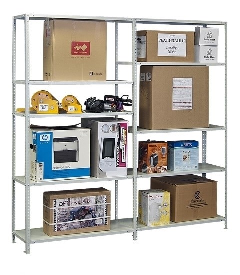 Стеллаж для кладовки 2000*1000*600 с 4 полками и с цельной стойкой металлический сборный устойчивы к коррозии, механическим повреждениям и прочим внешним воздействиям. Важной особенностью стеллажа является цельная стойка (не разборная) за счет чего конструкция более прочная, устоийчивая и имеет большую грузоподъемность. Равномерно распределенная нагрузка на полку составляет 120кг., на весь стеллаж - 750кг. Грузоподъемность указана при установке нижний полки не выше 20 см от пола. Полки крепятся к стойкам с помощью болтов (крепеж в комплекте). Шаг креления полки 25 мм, что позволяет установить нужное количество полок на любой высоте. Полки имеют усиление в центре, что предотвращает прогиб при излишней нагрузке. Стойки и полки покрыты светло-серой (RAL 7035) порошковой краской, которая защищает металл от коррозии.