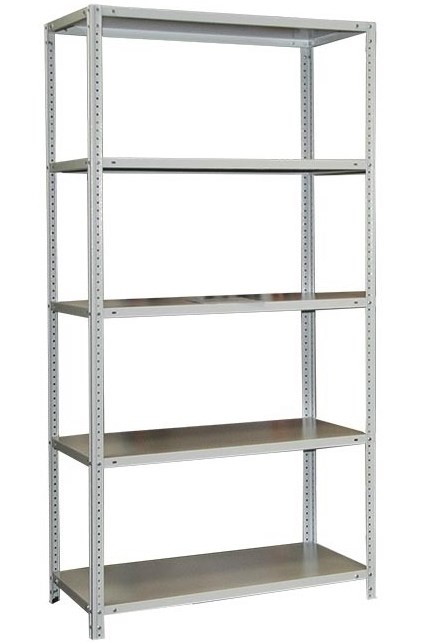 Стеллаж для кладовки 2500*1200*600 с 5 полками и с цельной стойкой металлический сборный устойчивы к коррозии, механическим повреждениям и прочим внешним воздействиям. Важной особенностью стеллажа является цельная стойка (не разборная) за счет чего конструкция более прочная, устоийчивая и имеет большую грузоподъемность. Равномерно распределенная нагрузка на полку составляет 120кг., на весь стеллаж - 750кг. Грузоподъемность указана при установке нижний полки не выше 20 см от пола. Полки крепятся к стойкам с помощью болтов (крепеж в комплекте). Шаг креления полки 25 мм, что позволяет установить нужное количество полок на любой высоте. Полки имеют усиление в центре, что предотвращает прогиб при излишней нагрузке. Стойки и полки покрыты светло-серой (RAL 7035) порошковой краской, которая защищает металл от коррозии.