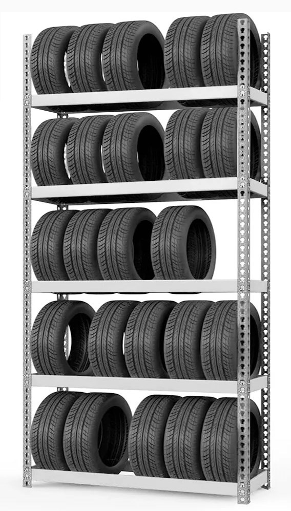 Стеллаж металлический для шин 3000х1551х632 (6 полок) в гараж изготавливаются на базе металлического стеллажа Титан МС-Т. Благодаря этому не обязательно хранить на всех ярусах колеса - вы можете покрыть часть ярусов фанерой и размещать на них инструменты, вещи и т.д. Полка выдержит до 300 кг.