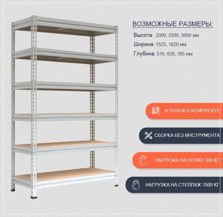 Стеллаж ТИТАН МС-Т MR 3000*1525*635 ( 6 полок) металлический сборный