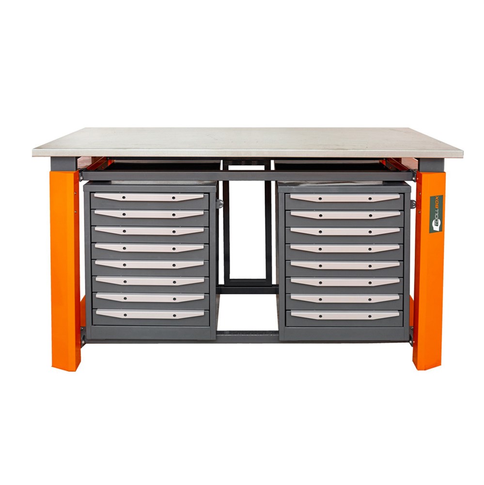 Верстак ТВР1800(ТВ8-ТВ8). Высота столешницы верстака может регулироваться по желанию заказчика в диапазоне 924-1044 мм.
